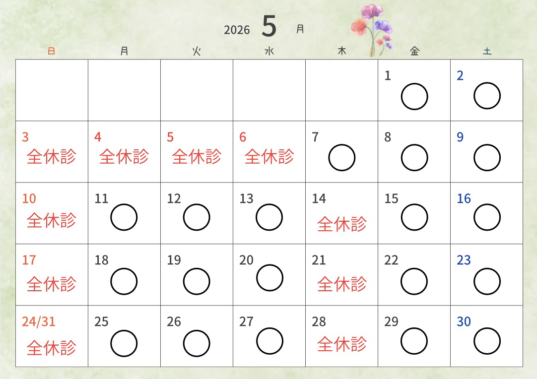 ※祝日がある週の木曜は診療日です 休診日:木曜・日曜・祝日