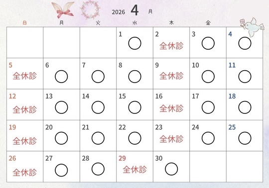 ※4月30日(木)は診療いたします