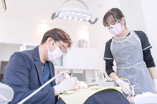 希望があれば、一般歯科から審美・インプラント・矯正まで、さまざまな分野を基礎から学ぶ機会をご用意。多様な患者層と幅広い治療領域に日々触れながら、より一層のスキルアップを目指していただけます。指導医による丁寧なOJTと経験に応じた研修制度も整備しています。