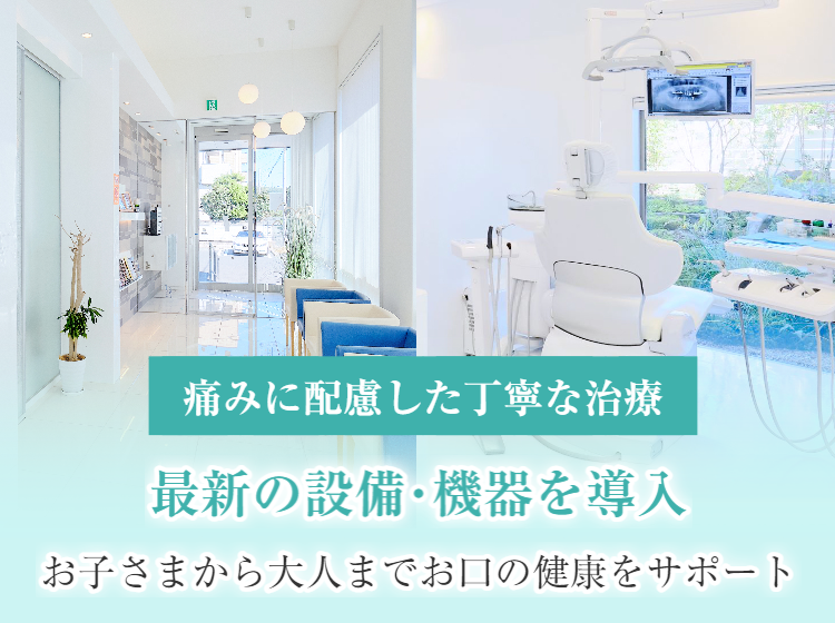 治療に関する不明瞭な部分をなくし、丁寧なご説明を行うように心がけています。お子さまからご高齢の方まで、あらゆる年代の方に対応できる歯科医院です。ご家族のかかりつけ歯科医として、是非どんなことでも気軽にご相談ください。