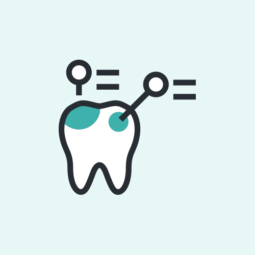 虫歯の治療では、麻酔注射の痛みを軽減するためにさまざまな工夫をしています。歯ぐきへの表面麻酔、極細の針の使用、そしてゆっくりと時間をかけて丁寧に行う麻酔液の注入。きちんと麻酔が効いたのを確認してから治療を開始します。