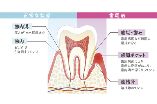 歯周病の原因は、歯や歯周ポケット(歯と歯ぐきの間の溝)に付着した歯石やプラークです。歯周病の治療は、この歯石やプラークを取り除くことが重要です。