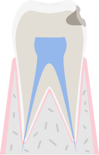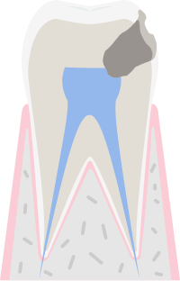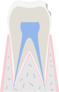 | 治療法 | 細菌感染してしまった神経を除去し、内部消毒し、被せ物で機能回復。 |