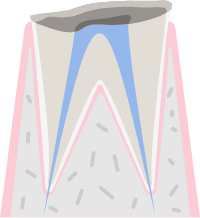 | 症状 | 神経まで進行した虫歯。温熱痛をともなうこともあり。何もしなくてもズキズキし、つよい痛みをともなうことが多い。 |